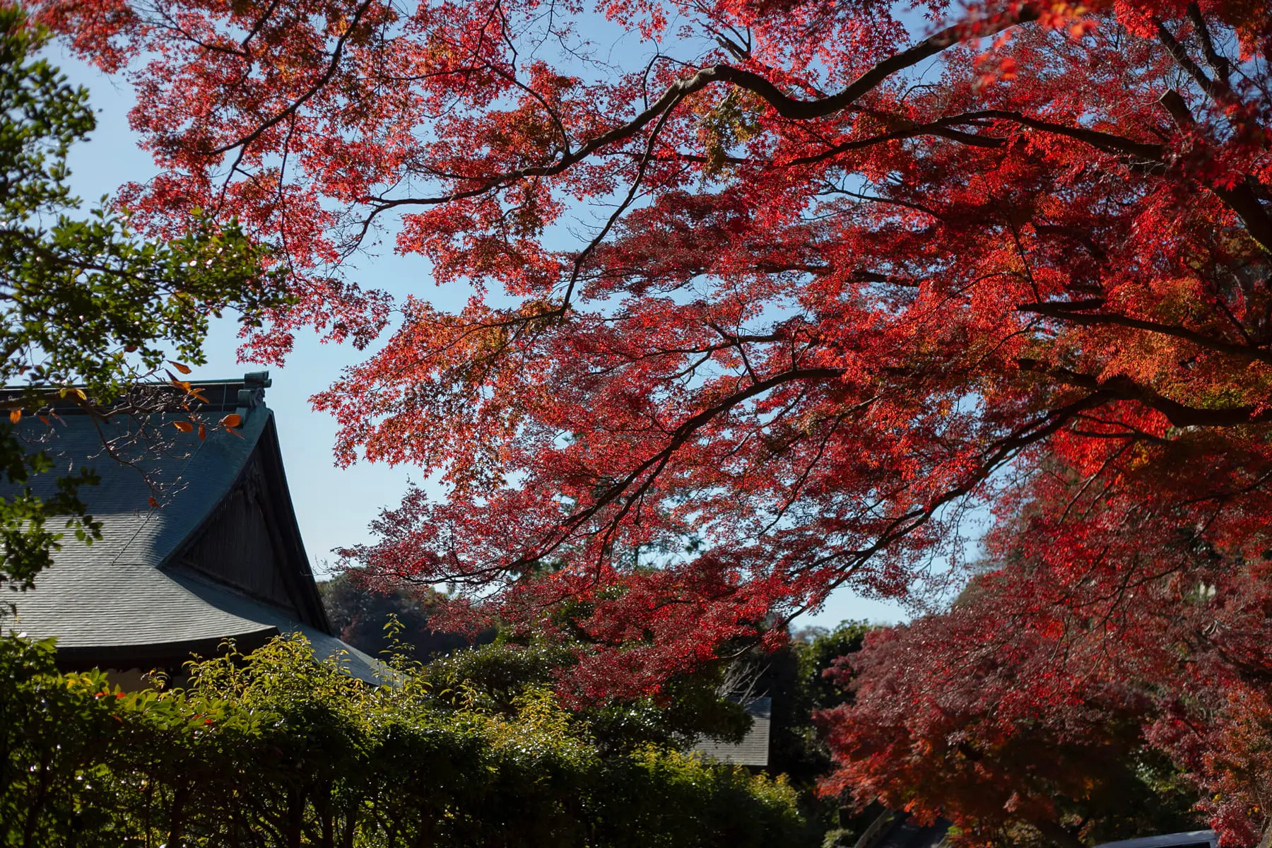 次に紹介したいのが、静かな山あいにお寺が点在する 北鎌倉エリア。一年を通して訪れたい場所ですが、紅葉をしっかり楽しみたいなら、12月に入ってから が狙い目です。鎌倉の中でも比較的ゆっくり色づくため、長谷のピークより少しあとに訪れるのがおすすめです。