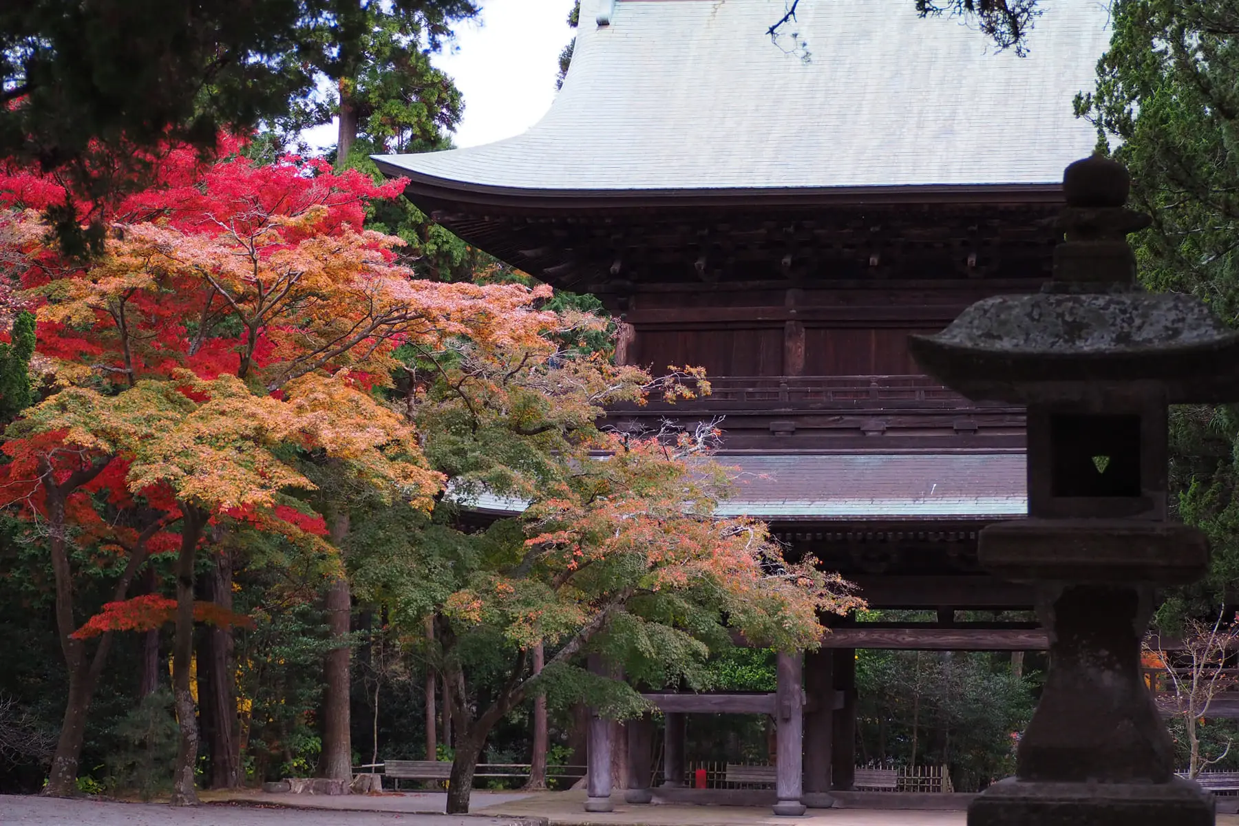 日本最初の禅寺として知られる建長寺も、紅葉のペースはゆったりめ。例年のピークは 11月末〜12月初め で、円覚寺と同じく“冬の入口の紅葉”を楽しむタイプのお寺です。広い参道と高い木々が多く、散策そのものが心地いいエリアです。
