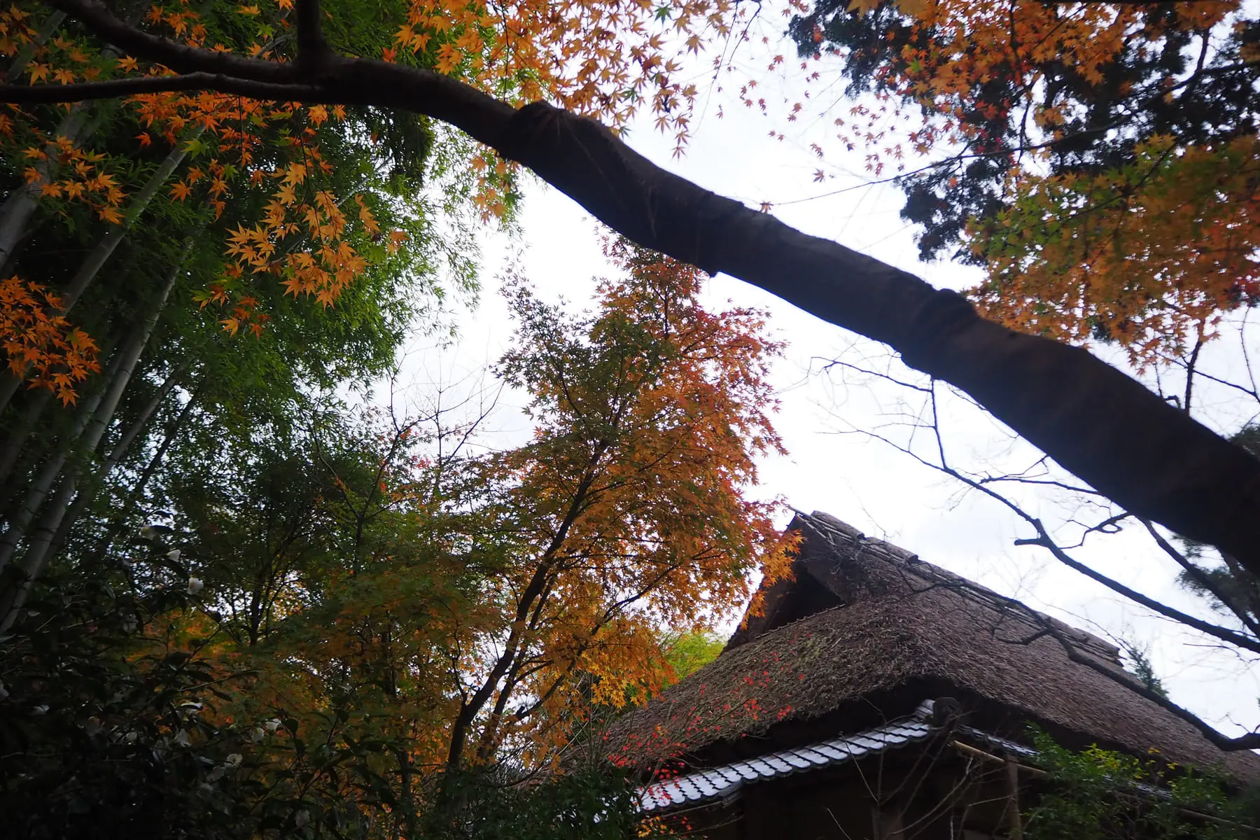 もともとは京都・西賀茂の里山に建てられた、一条家別邸の離れ。一見素朴な田舎家風の佇まいですが、実は恵観公自身による設計で、随所に“雅”と“野趣”が同居する、皇族のための 小さな茶屋 のような空間です。昭和34年に鎌倉へ移築され、現在は国の重要文化財となっています。