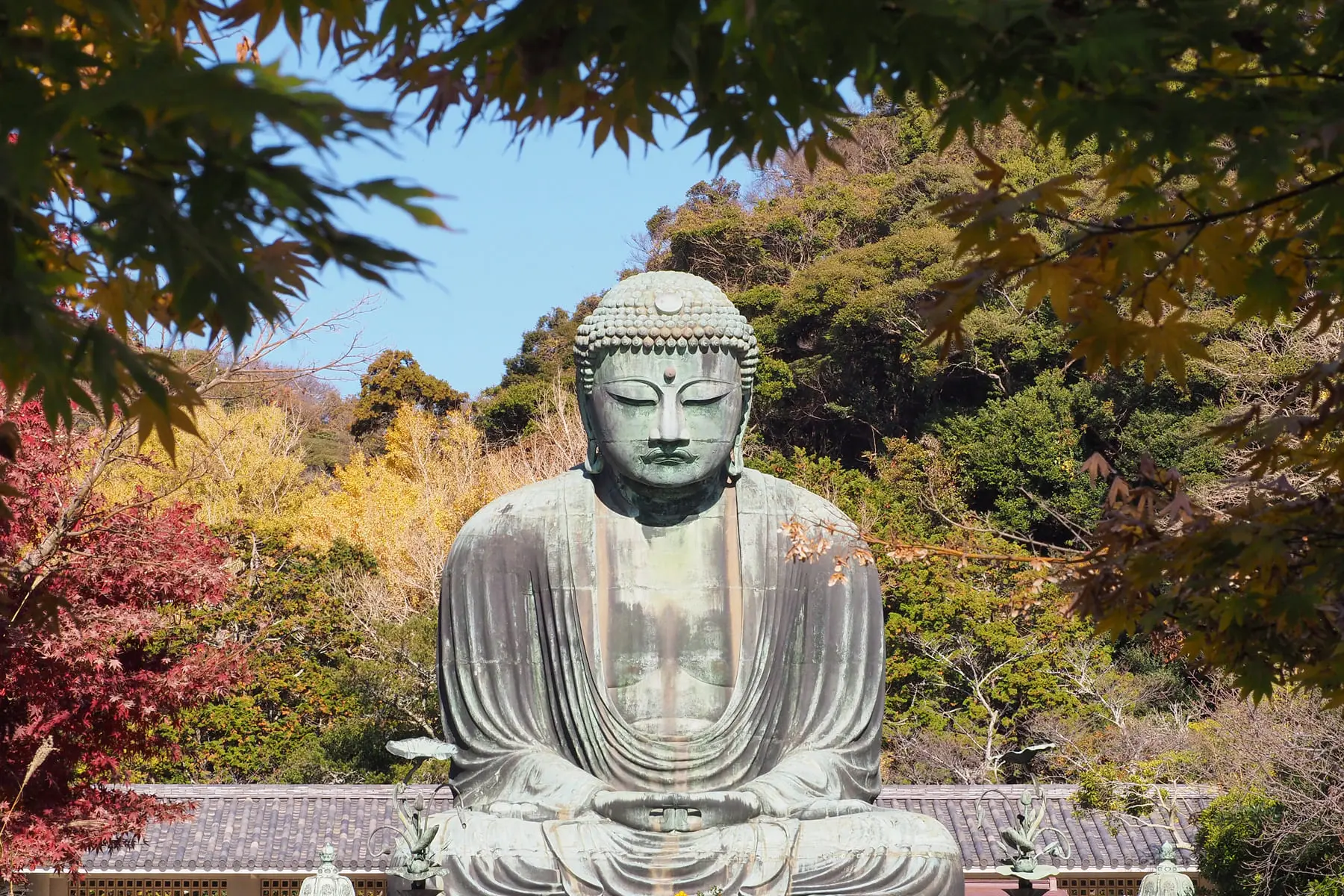 長谷に足を運ぶなら、鎌倉の大仏さまが鎮座する 高徳院 もぜひ立ち寄りたいスポット。紅葉の季節になると、堂々と佇む大仏さまの背後に赤や黄が重なり、秋ならではの“鎌倉らしい”風景が広がります。大仏さまを眺めたあとは、ゆっくり境内を歩いてみてください。大小さまざまな木々が色づき、長谷の秋を全身で感じられます。