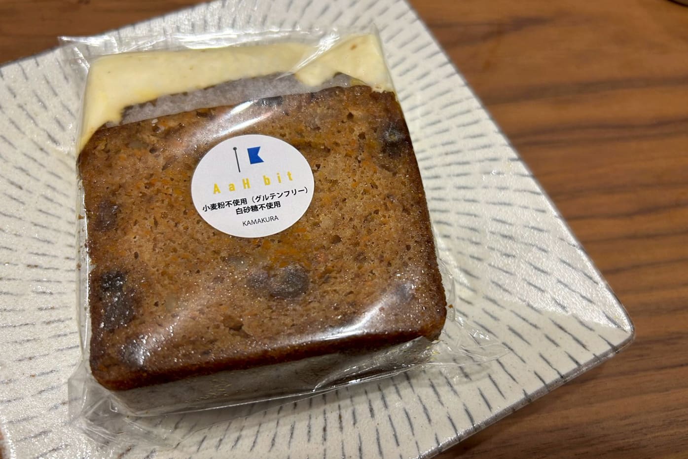 人参のやさしい甘みと、ナッツの香ばしさ。そこにスパイスがほんのりと効いて、奥行きのある風味に。小麦粉も白砂糖も使われていないとは思えないほど、満足感のある一品です。アイシングは、ほどよい酸味とクリーミーさが同居する味わい。ケーキと一緒に口に運ぶと、バランスの良い甘さが広がります。店頭では冷蔵で販売されていますが、少しレンジで温めてアイシングをとろりとさせると、また違ったおいしさに出会えます。