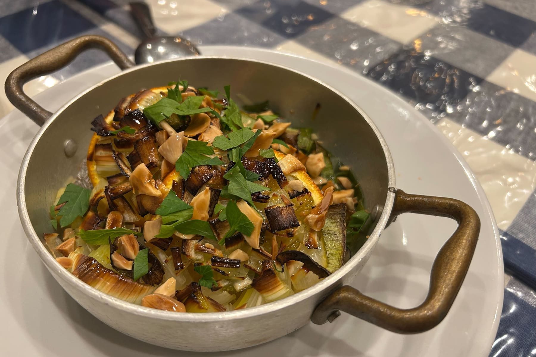 魚料理は、種類ごとに調理方法が変わるのもこのお店の楽しさのひとつ。この日は、鰆をオレンジとネギで蒸し焼きにした一皿をいただきました。