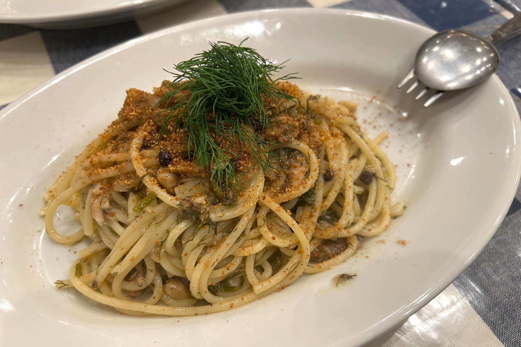 LIBERTAでは、いわゆる“定番のイタリアンパスタ”よりも、シチリアの郷土料理を中心にしたメニューが多いのが特徴です。観光地のイタリアンでありがちなラインナップとは少し違っていて、ここでしか味わえないパスタに出会えるのが嬉しいところ。